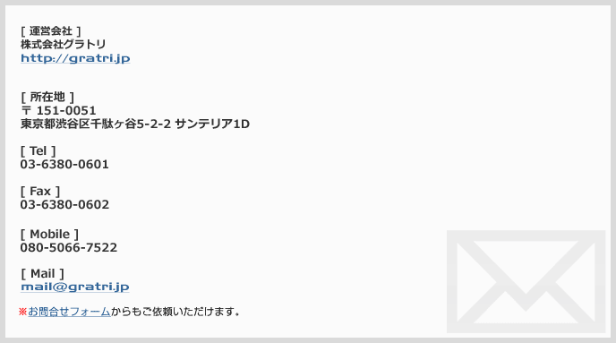 ご依頼の方は、下記電話番号宛にお電話いただくかメールでお問合せください。